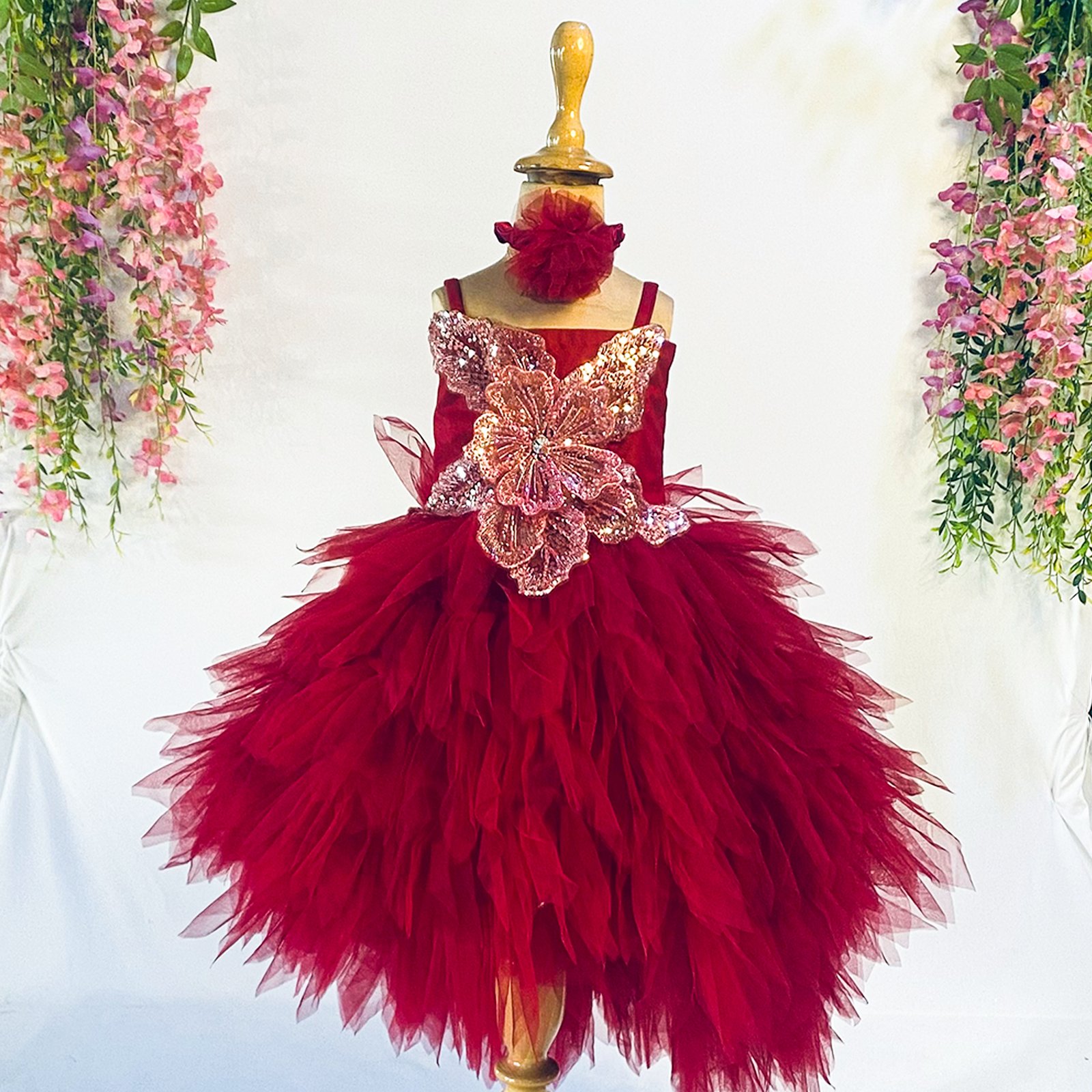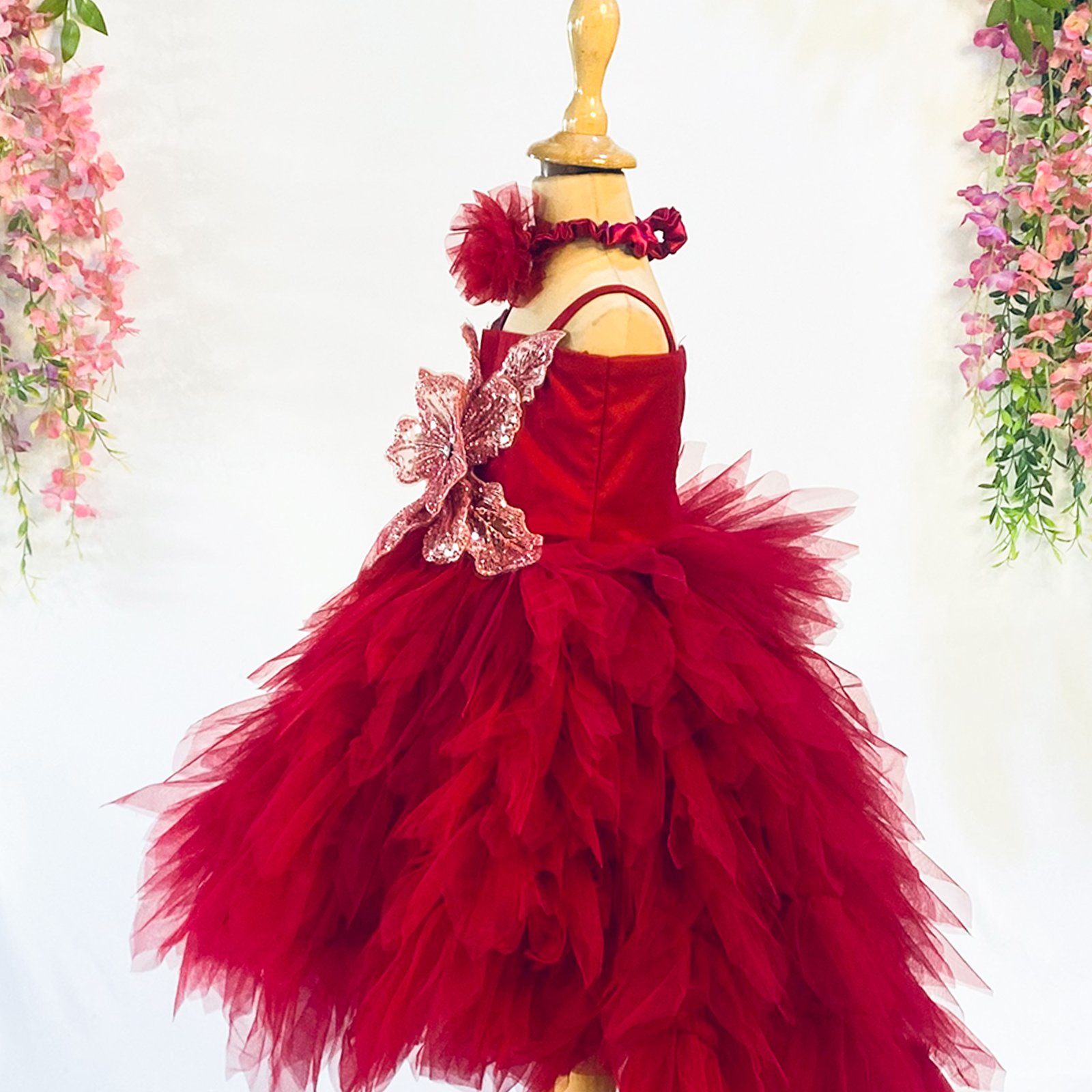 Elegant and eye-catching, the Maroon Net Dress brings royal charm to every celebration from The Fairy Tale Collection.